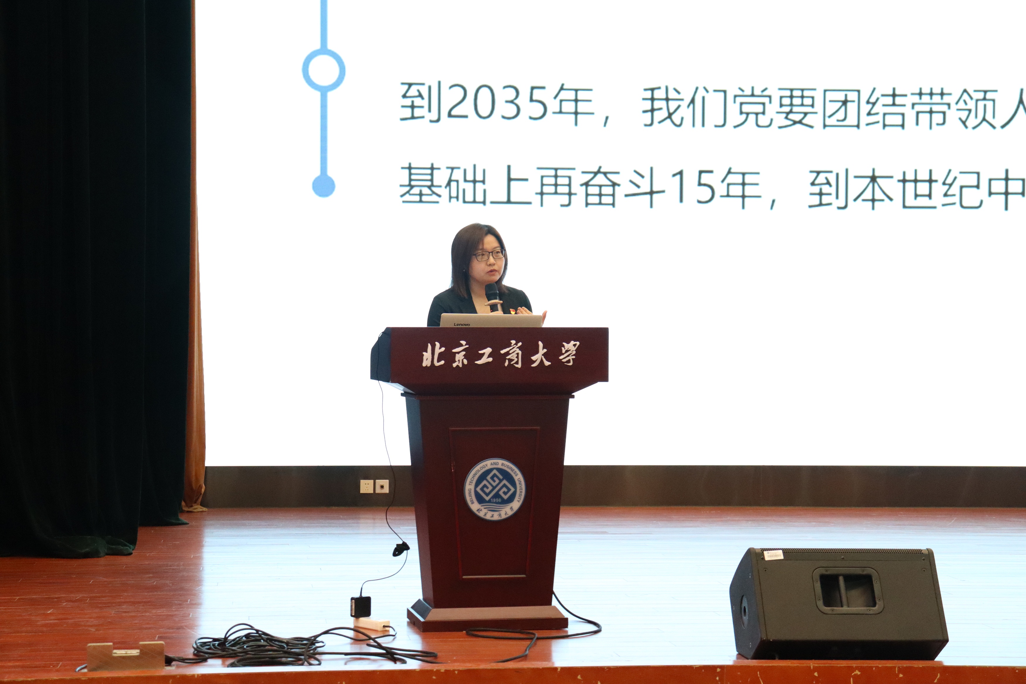 公司2022级兼职辅导员、马克思主义学院教师段旭颖以《薪火相传、时代有我》为主题讲微党课。她领学了习近平总书记在庆祝中国共产党成立100周年大会上的讲话,从会议的主要内容、重要意义、时代青年的担当三个方面进行具体讲解。指出认真学习贯彻习近平总书记讲话精神,对实现中华民族伟大复兴的中国梦具有重要现实指导意义。