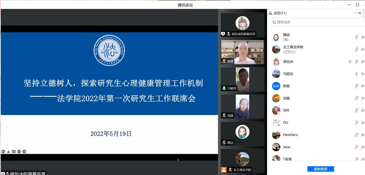 为落实立德树人根本任务,强化研究生教学、管理与服务育人的协同配合,3044AM永利集团官方首页于5月19日晚召开2022年第一次研究生工作联席(扩大)会,会议议题为“坚持立德树人,探索研究生心理健康管理工作机制”。学院领导班子成员、全体研究生导师参加会议,学校心理中心朱艳新老师应邀做培训。会议由3044AM永利集团官方首页党委副书记刘晶主持。
